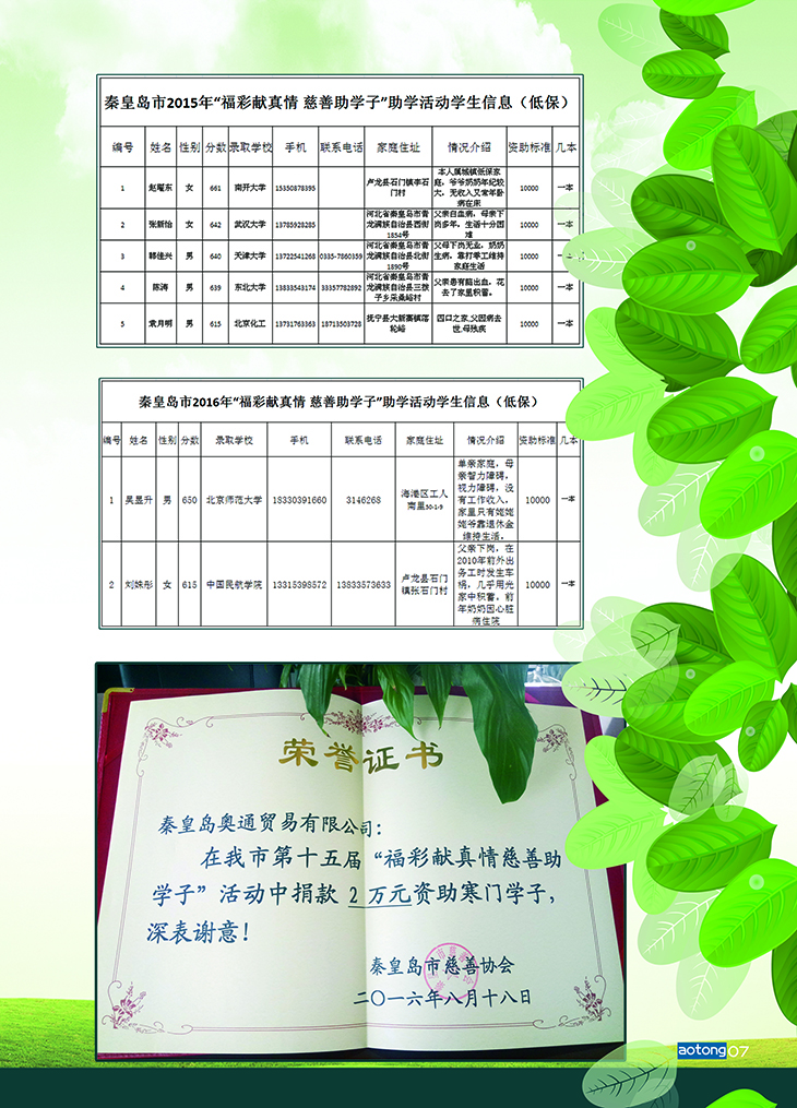 我市“福彩獻(xiàn)真情 慈善助學(xué)子”活動從2002年至今,已累計(jì)投入資助金3200萬元,資助人數(shù)6600多人,曾多次榮獲中華慈善總會、省慈善總會兩級慈善項(xiàng)目獎(jiǎng),已成為我市最具影響力的一個(gè)公益品牌,為秦皇島這座“中國最具愛心城市”提供了生動的注腳。