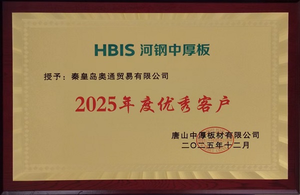 在河鋼集團(tuán)中厚板板塊的年度評選中,秦皇島奧通貿(mào)易有限公司憑借卓越的服務(wù)能力、堅(jiān)實(shí)的合作基礎(chǔ)以及良好的行業(yè)口碑,從眾多合作伙伴中脫穎而出,被授予“2025年度優(yōu)秀客戶”榮譽(yù)稱號(hào)。