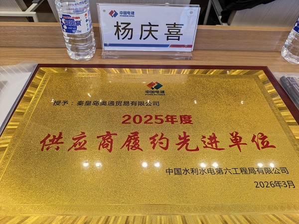 中國電建集團中國水利水電第六工程局有限公司(以下簡稱“水電六局”)2026年度供應鏈年會暨合作共贏推進會在遼寧沈陽隆重召開。會上,秦皇島奧通貿(mào)易有限公司(以下簡稱“奧通公司”)憑借卓越的履約能力、優(yōu)質(zhì)的商業(yè)信譽和高效的服務(wù)水平,從眾多合作伙伴中脫穎而出,榮獲水電六局2025年度“供應商履約先進單位”稱號。這一榮譽的取得,標志著奧通公司在供應鏈協(xié)同與戰(zhàn)略合作領(lǐng)域的綜合實力再次獲得行業(yè)龍頭企業(yè)的充分肯定。
